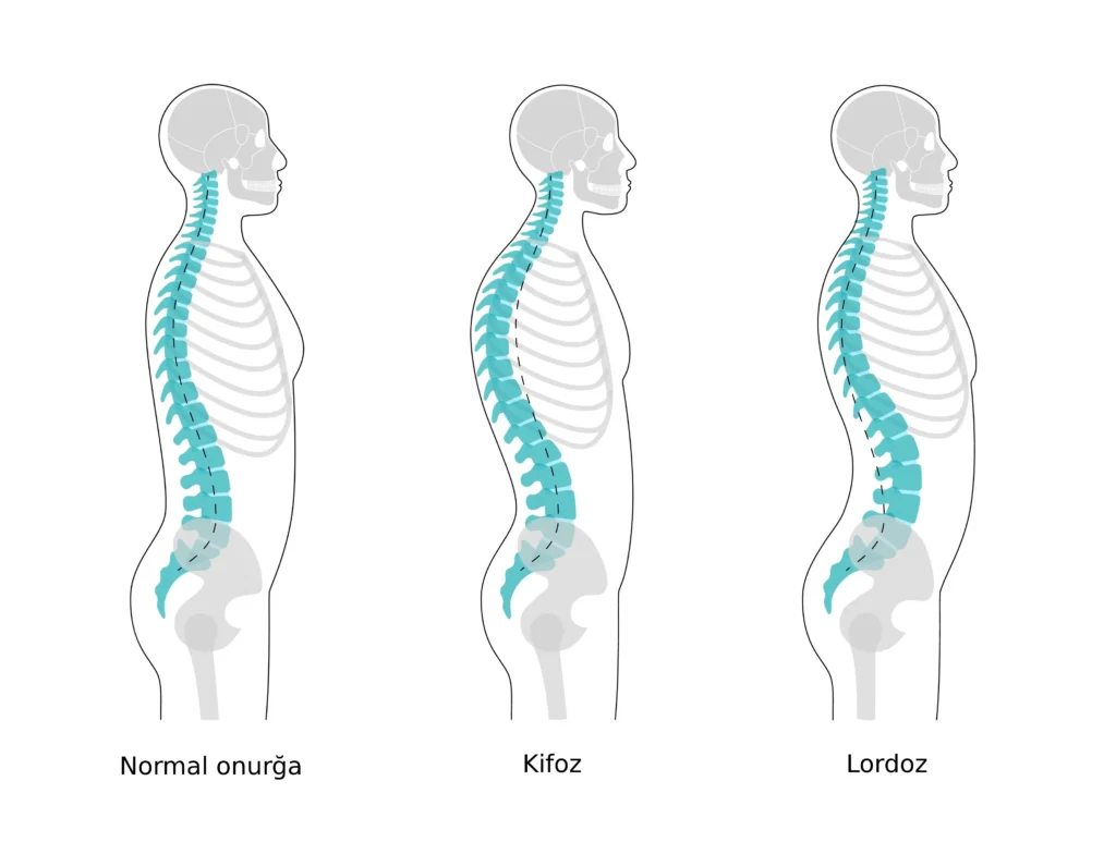 - Servikal Lordoz (Boyun nahiyəsi): Boyun onurğasının daxilə doğru olan təbii əyilməsidir. Əgər bu əyrilik çox dərindirsə və ya əksinə, tamamilə düzləşibsə, bu, ciddi baş və boyun ağrılarına yol açır.